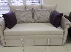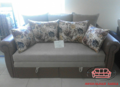 Уютный и компактный диван с множеством мягких подушек легким движением трансформируется в полноценную двух-спальную кровать. Достаточно лишь выдвинуть 2 бельевых короба на роликах и перекинуть половинку матраса.