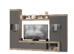 Материал фасадов и корпуса ЛДСП. Цвет дуб Каньон / Графит. Габаритный размер 2800 * 2000 * 350. Размер ниши под ТВ 1500*954. Ручки металл. Стекло тонированное.