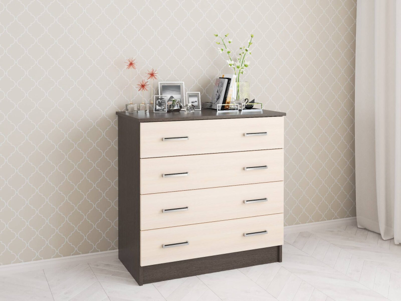 Материал ЛДСП. Цвет Венге / лоредо. Направляющие роликовые. Ручки пластмасса. Размеры 820*425*810.
