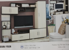 Материал ЛДСП. Цвета дуб Венге / молочный, дуб Крафт золотой / белый. Размеры указаны в описании. Размер ниши под ТВ 1255*728. Ножки пластик. Ручки пластик.