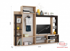 Гостиная Торонто - оригинальный дизайн, вместительность и небольшие габариты. Занимая мало места по глубине и ширине, она включает в себя платяной шкаф с штангой, нишу под ТВ и множество полок для приставок, колонок, книг и декора. Использование популярных цветов Дуб сонома и венге даёт возможность легко сочетать эту стенку в гостиной с другими предметами мебели – столами, журнальными столиками, стеллажами или комодами. Выполнена из экологичных материалов.