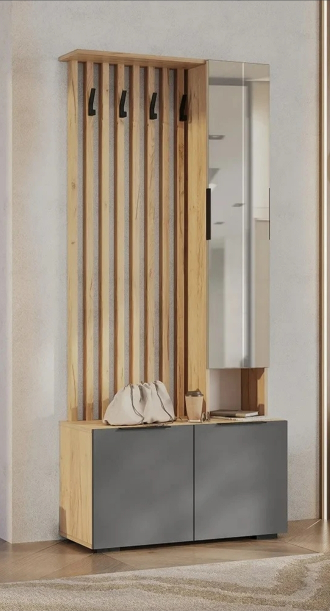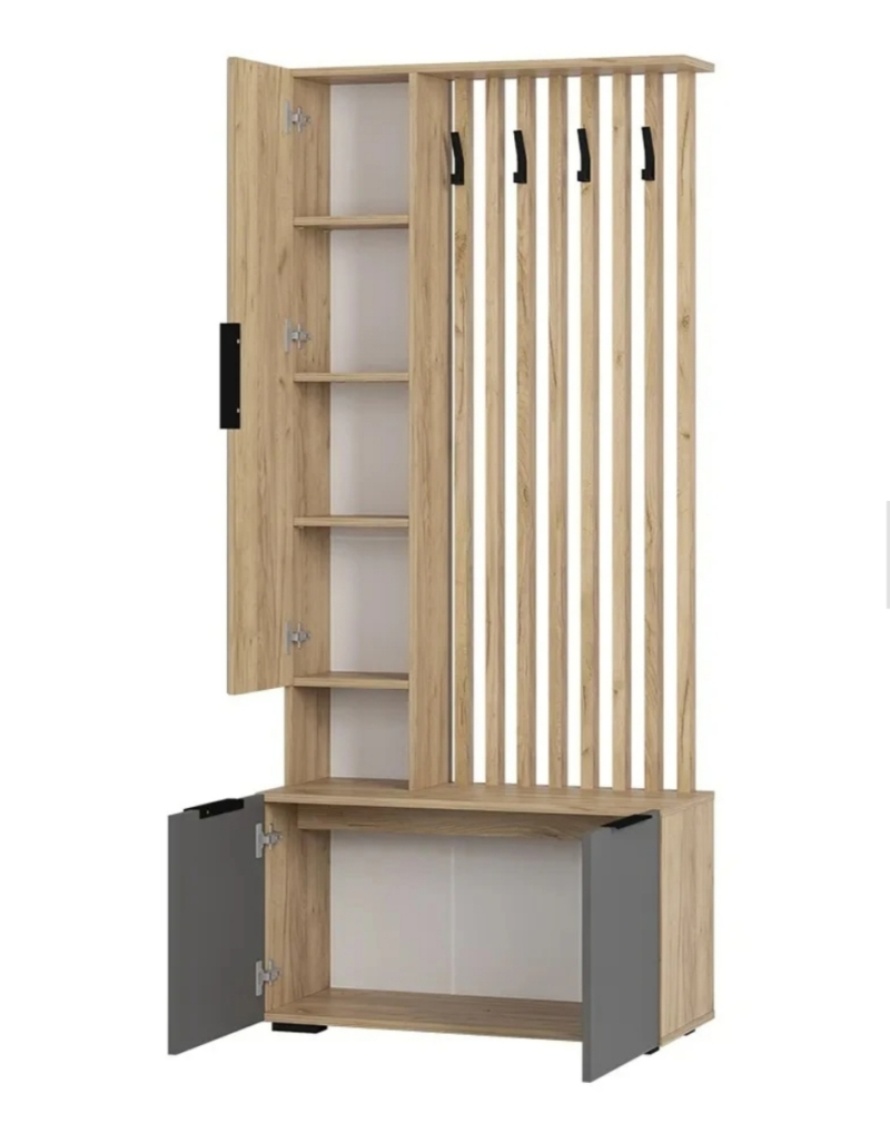Материал ЛДСП. Цвет дуб крафт золотой / графит. Размер 800*350*1850. Крючки и ручки пластик.