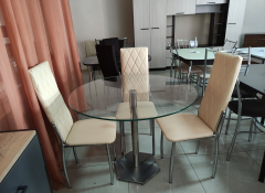 Закаленное стекло, ножка рандела металл, опора металл. Диаметр 1000,
