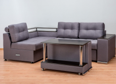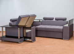 С другой - съемный журнальный столик на колесиках + выдвижной бар.